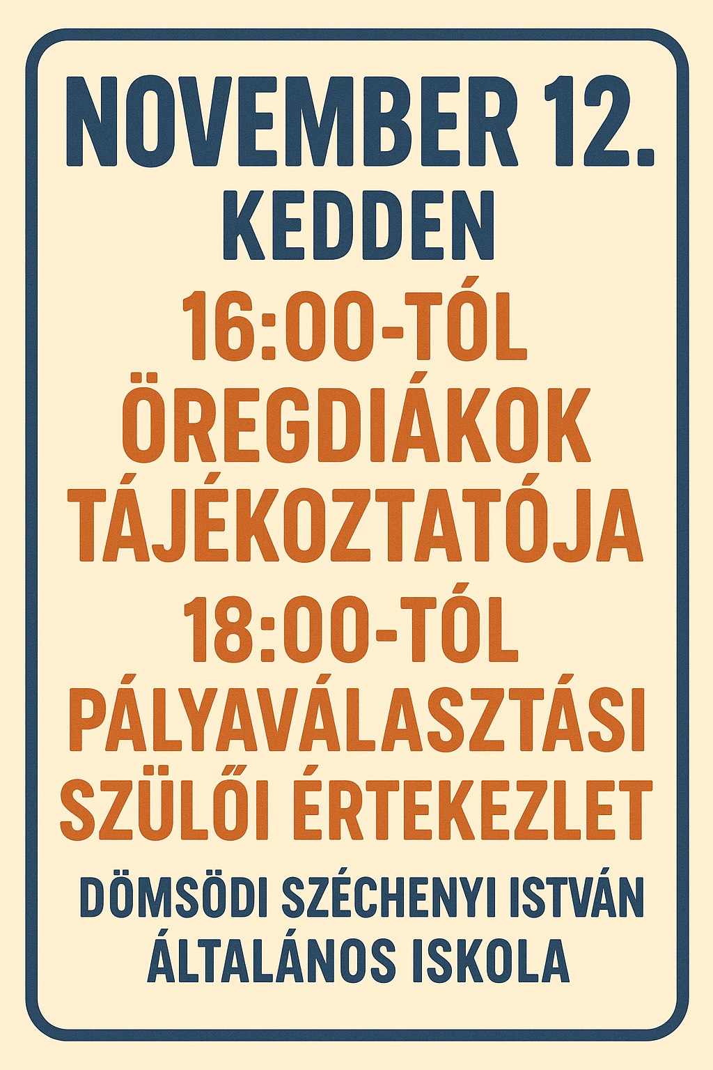 | november 11. | Felvételi tájékoztató a 8 évfolyamos tagozatra 17:00 |